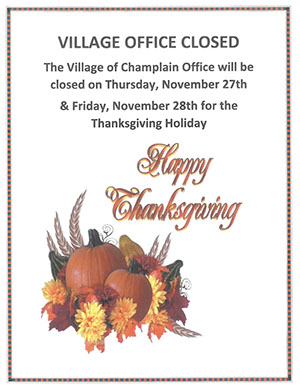 The Village of Champlain Office will be closed on